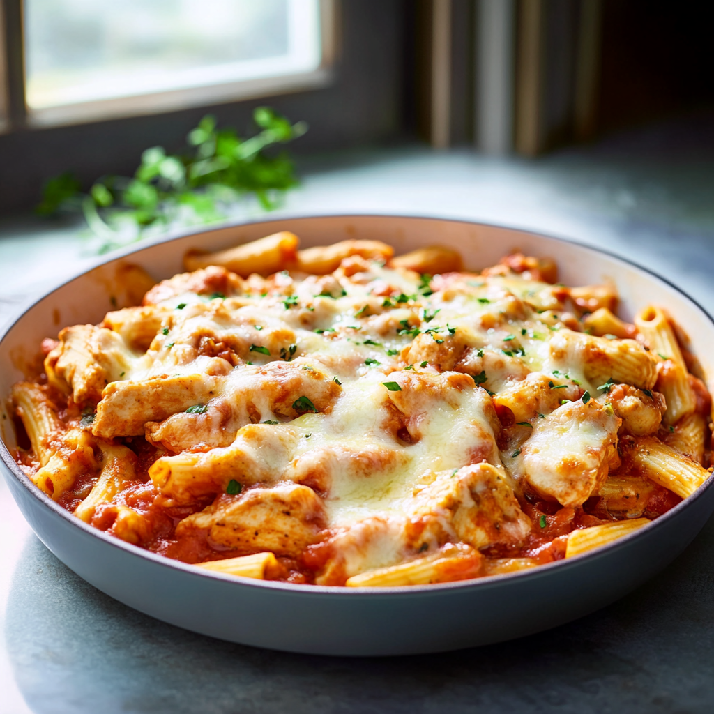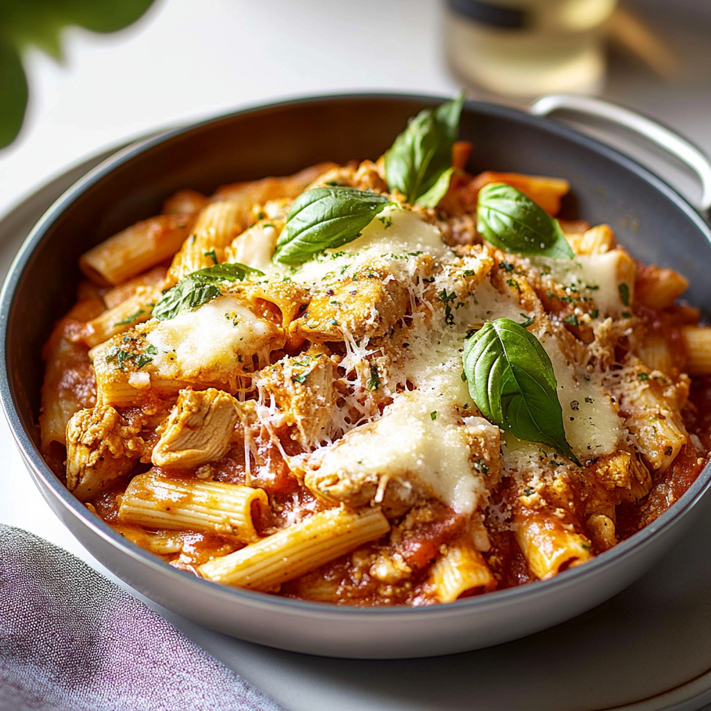 Satisfy your cravings with this One Pot Chicken Parmesan Pasta! This easy and delicious dish features tender chicken, al dente pasta, and a creamy, cheesy sauce—all cooked together in one pot for minimal cleanup.
