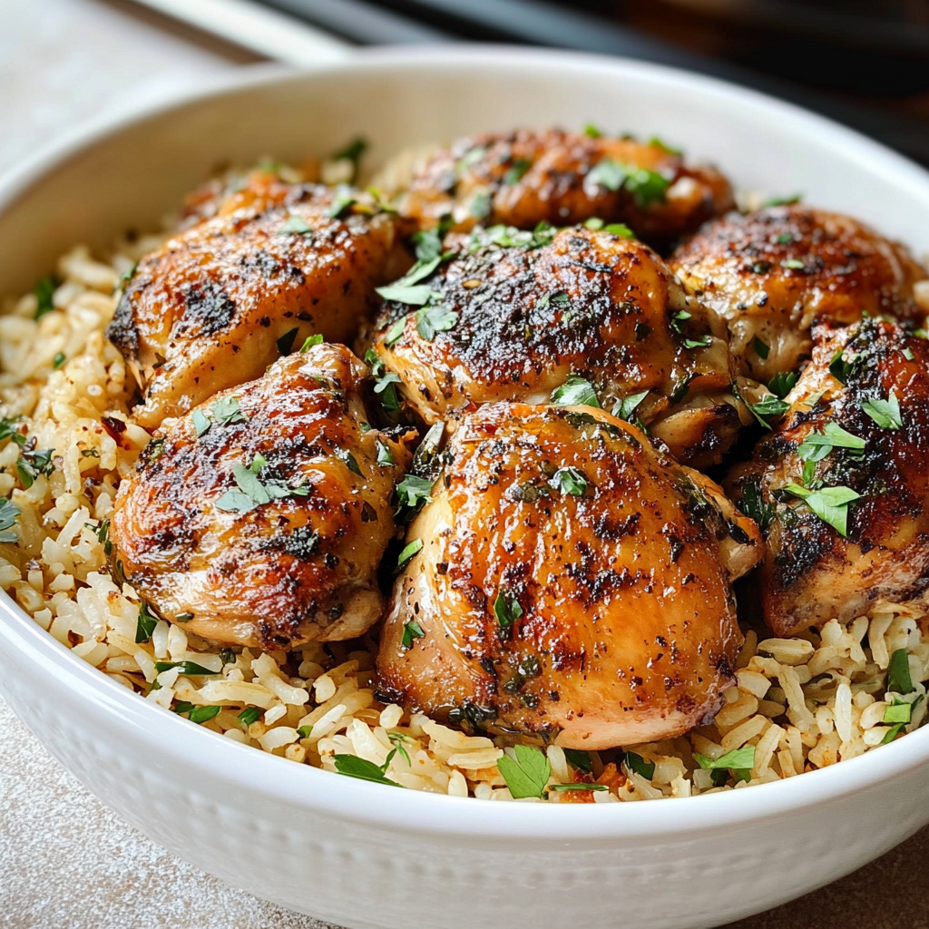 While bone-in chicken thighs add more flavor, boneless, skinless thighs can work as well. They will cook faster (in about 4 hours on low) and the rice may absorb a bit more broth. Just be mindful of the texture, as boneless thighs can dry out a bit more than bone-in ones.