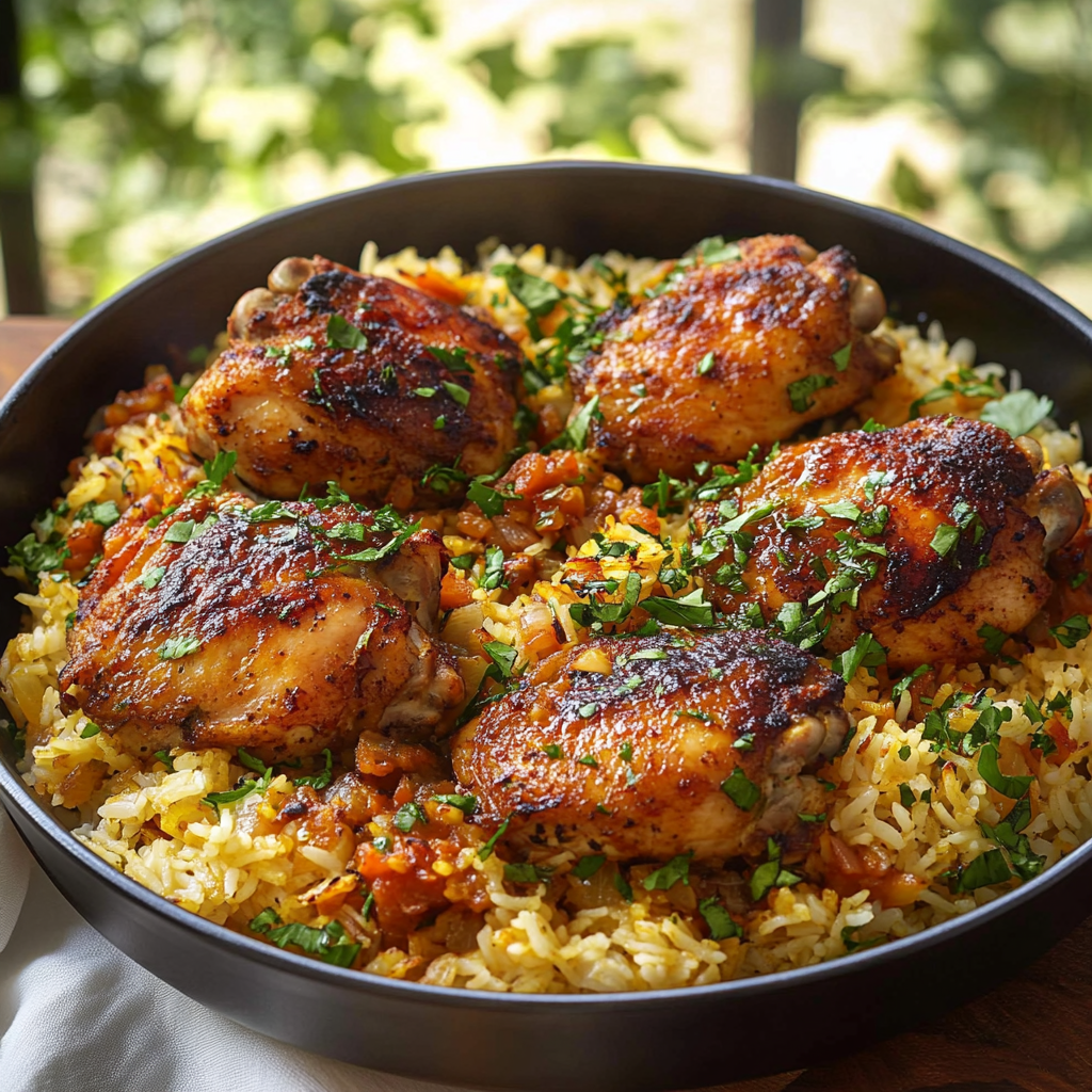 Before serving, squeeze a little fresh lemon juice over the dish to brighten the flavors. The acidity from the lemon will cut through the richness of the chicken and rice, providing a fresh, zesty contrast.